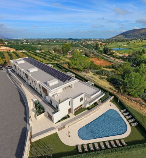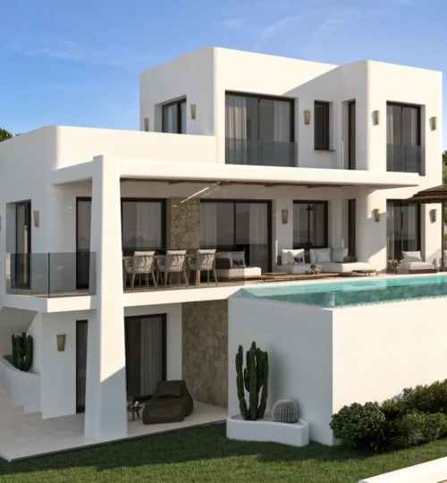 Dom wyróżnia się nowoczesną, dopracowaną architekturą. Centralnym punktem części dziennej jest salon z sufitem o podwójnej wysokości oraz dużymi przeszkleniami, które otwierają wnętrze na spektakularny krajobraz i zapewniają doskonałe doświetlenie naturalnym światłem. Dom został zaprojektowany z myślą o komforcie, przestrzeni i śródziemnomorskim stylu życia.